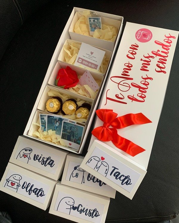 Contiene la caja + 5 cajitas individuales con espacio para 10 productos diferentes, se pueden modificar según el gusto.