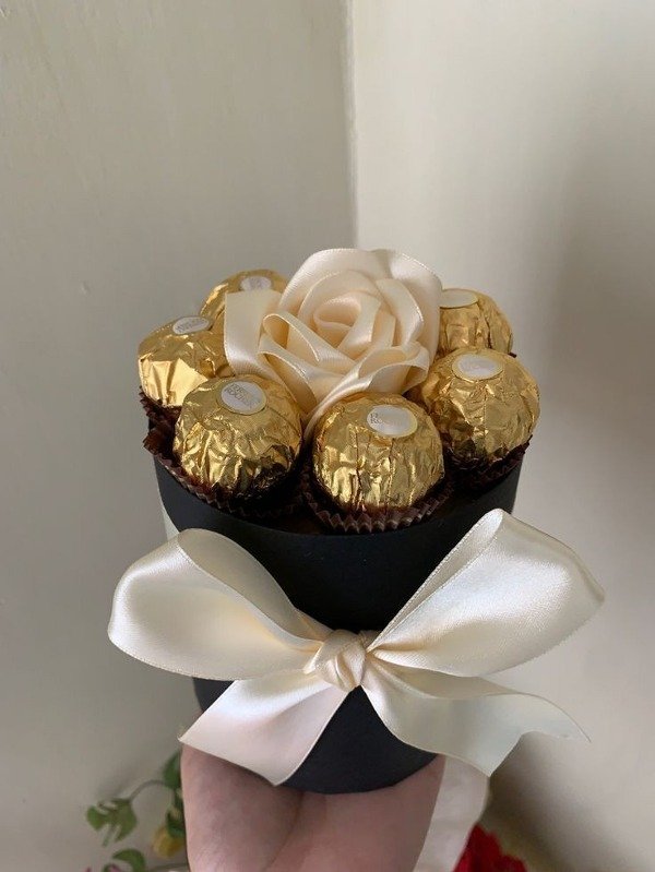 Incluye 7 bombones Ferrero Rocher y 1 rosa eterna