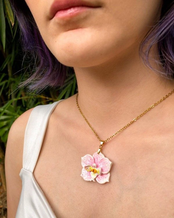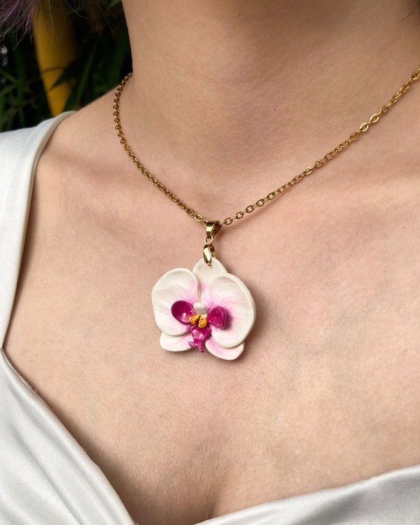 Acero quirúrgico plateado y Porcela fría con baño de resina. Largo collar 45-50cm