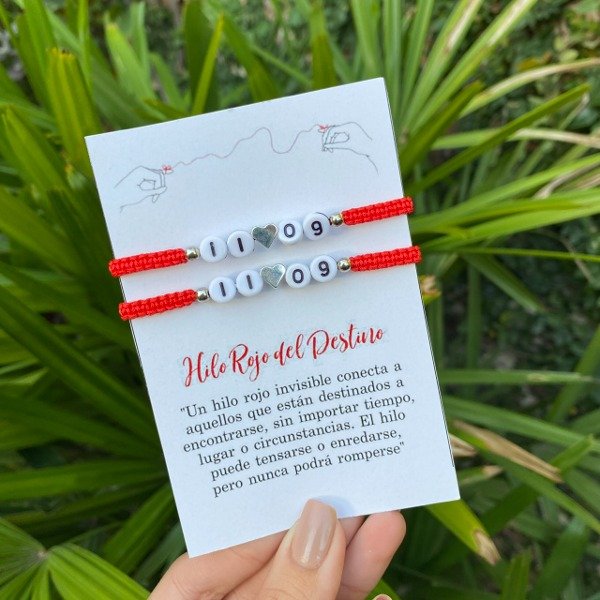Pulseras hilo rojo, fecha y corazón plateado