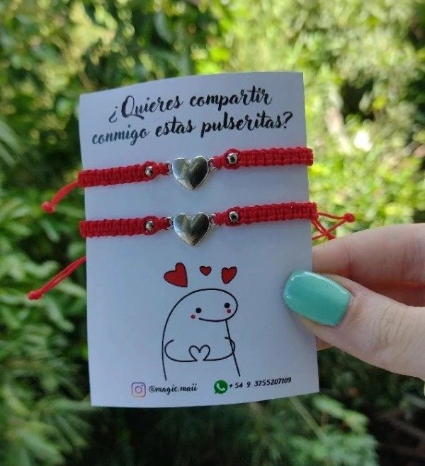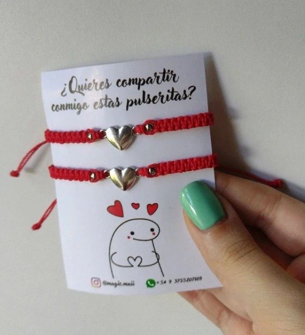 Pulseras para compartir hilo rojo y corazón